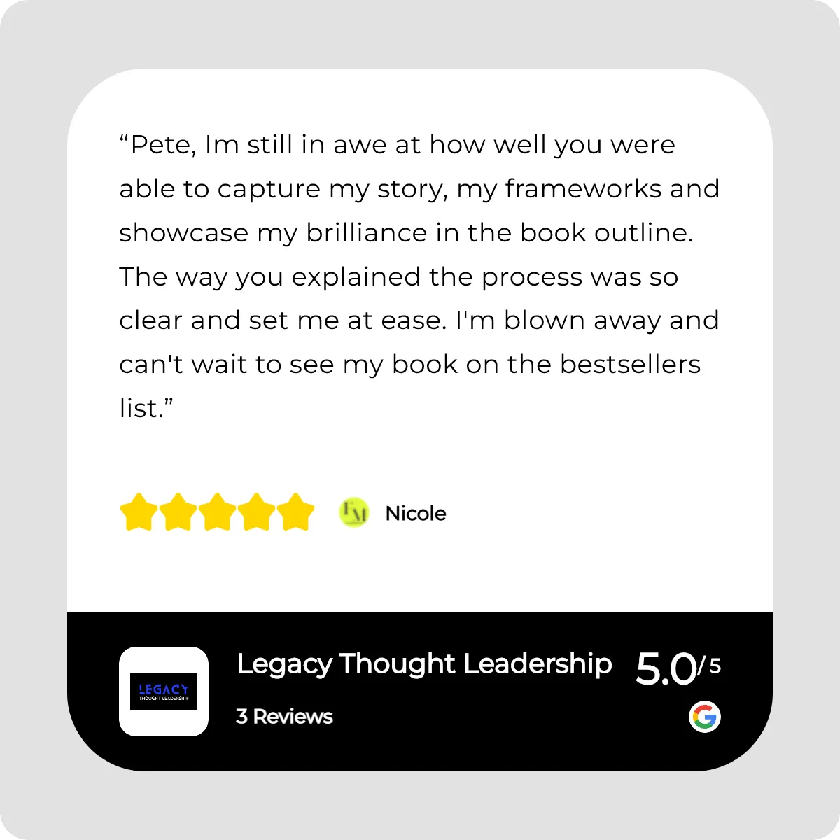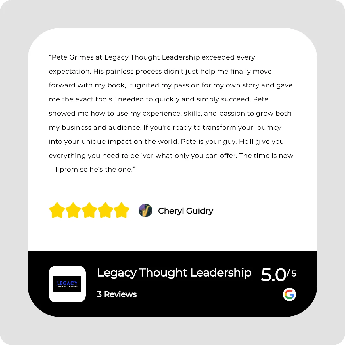 🎁 BONUS 1-on-1 Editorial Power Session: Bestselling author Pete Grimes will walk you through your custom blueprint, sharpen your message, and lay out the next steps to bestseller-level positioning.